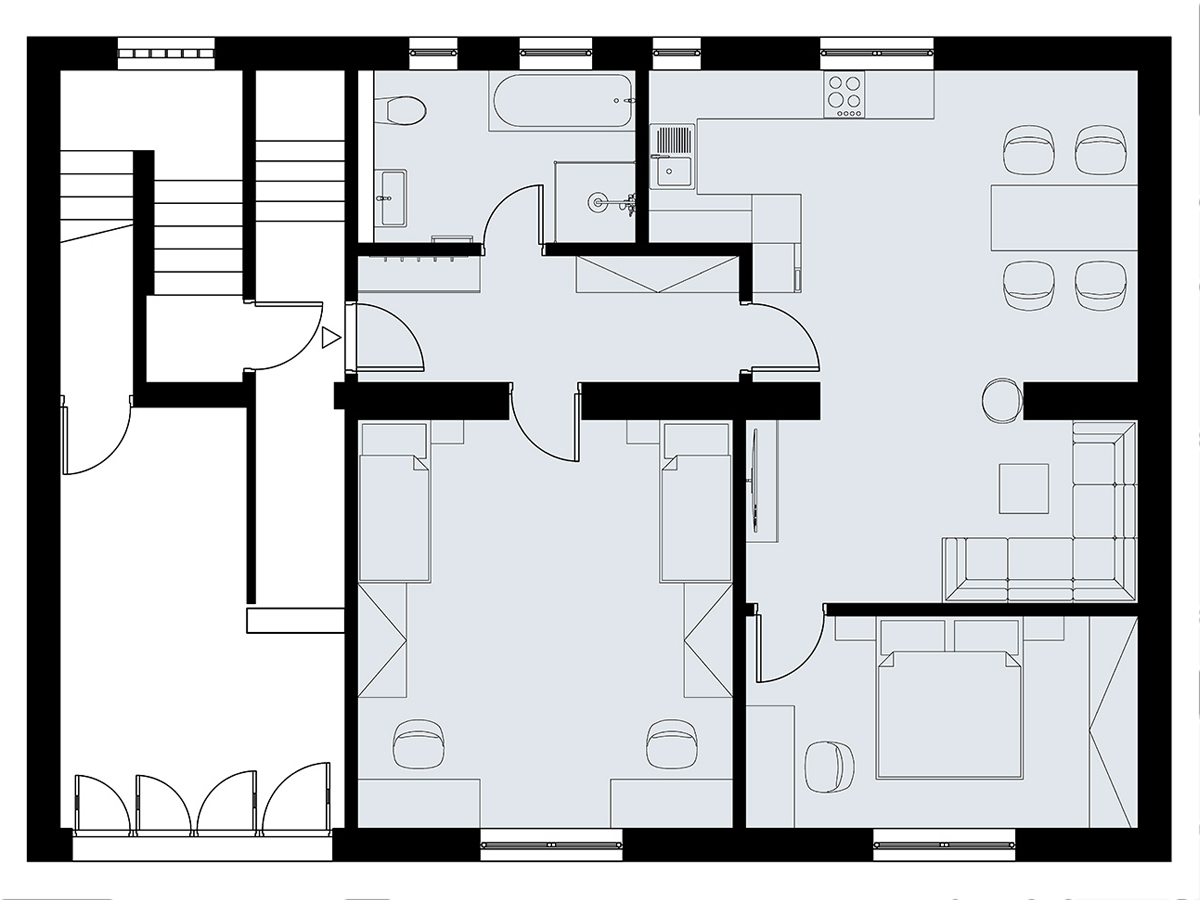 Dispozice lze částečně upravit, nábytek a vybavení bytu není v ceně. Zobrazit půdorys bytu